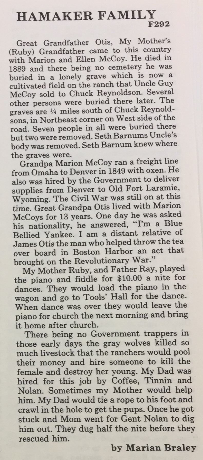Sioux County (NE) History, First 100 Years - page 437 - Hamaker family