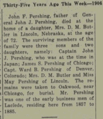 Laclede Blade March 28, 1941 - John F Pershing obituary - 35 years ago