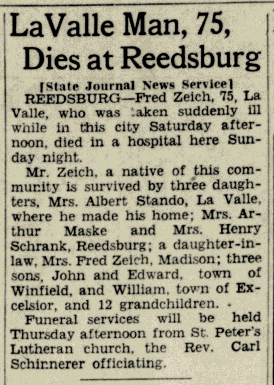 - [S181] Wisconsin, Sauk Co Cemetery Records Vol 2, pg 70.