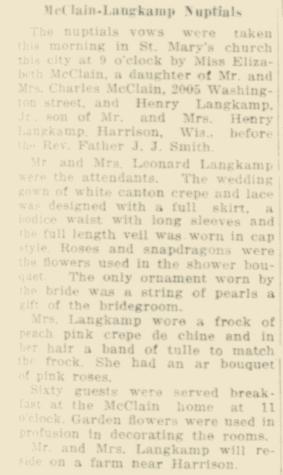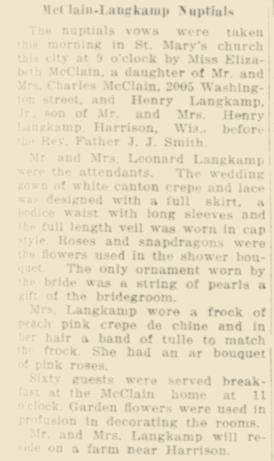 Children of Elizabeth Mary McClain and Henry Engelbert Langkamp