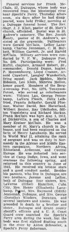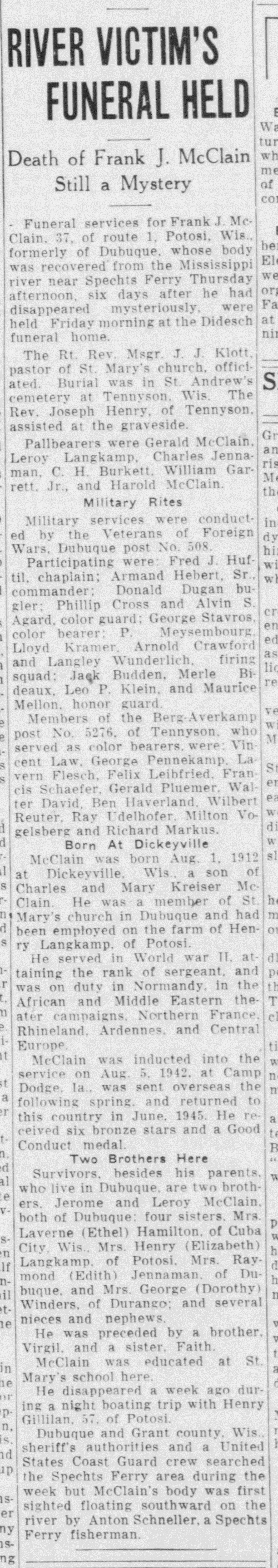 - [S373] U.S. Federal Census 1940 U.S. Federal Census, by Ancestry.com, Year: 1940; Census Place: Dubuque, Dubuque, Iowa; Roll: T627_1158; Page: 64A; Enumeration District: 31-33A.