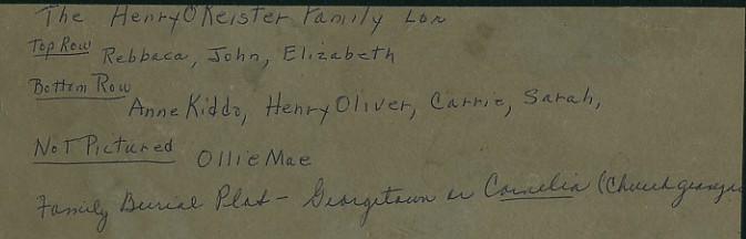- Ollie Mae Rister+ b. c 1872, d. 12 Jan 1904