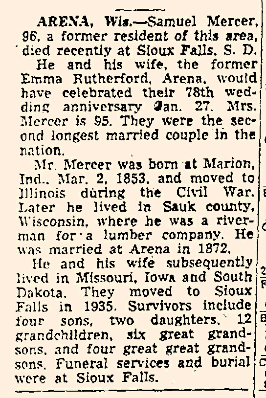 - Oscar Martin Mercer+ b. 14 May 1881, d. 11 Jan 1970