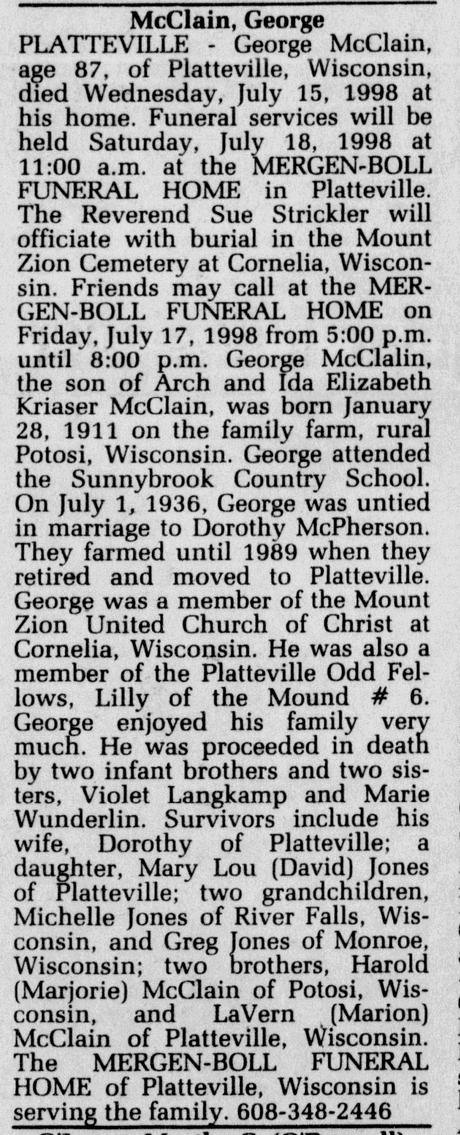 - [S180] Wisconsin Sauk Co Cemetery Records Vol 6, Pg. 98.