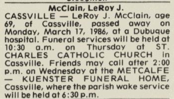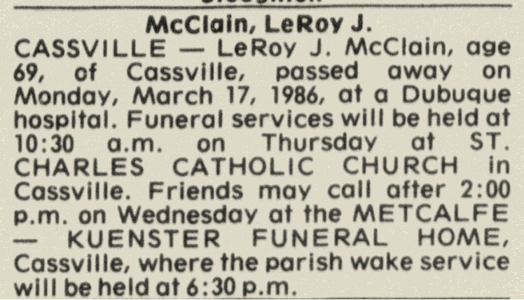 | Father* | Charles LeRoy McClain b. 26 Aug 1884, d. 7 Feb 1953 |