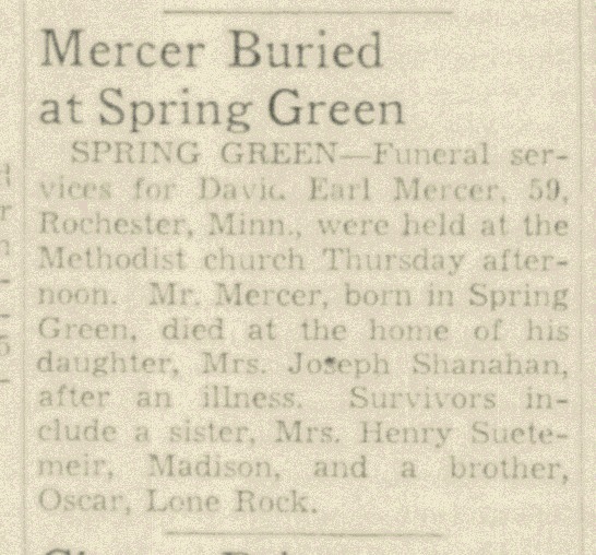 Child of Oscar Martin Mercer and Hannah Mary Swisher