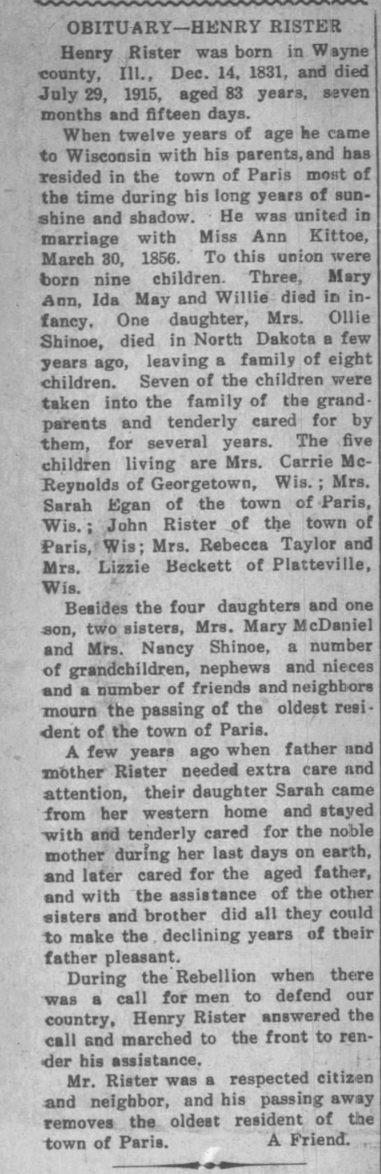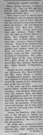 - John Rister b. 6 Sep 1876, d. 20 Oct 1956