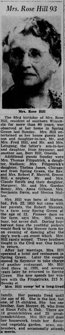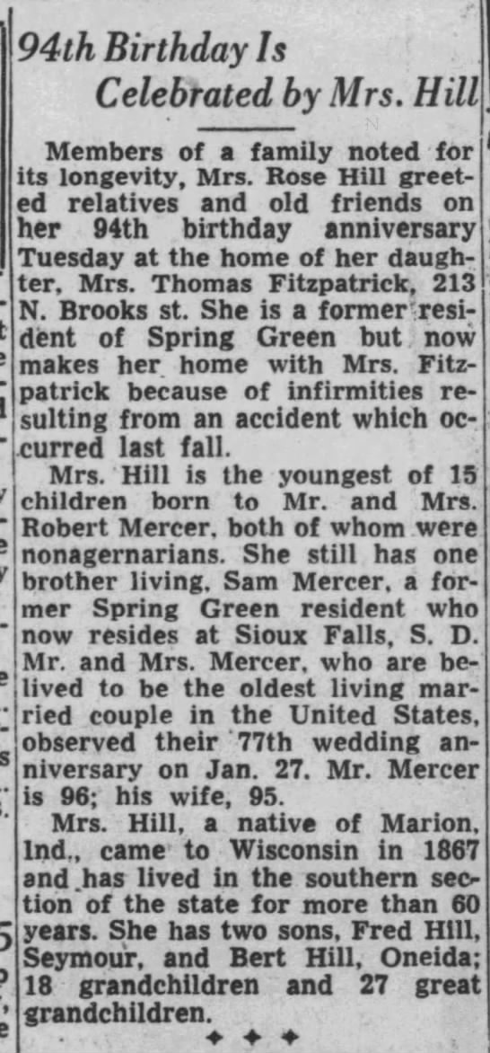 - Mabel Rose Mercer+ b. 28 Mar 1887, d. 6 May 1970