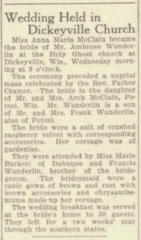Children of Marie Anna McClain and Ambrose Stephen Wunderlin