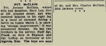 Child of Jerome Raymond McClain and Mary Angelene Burns