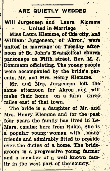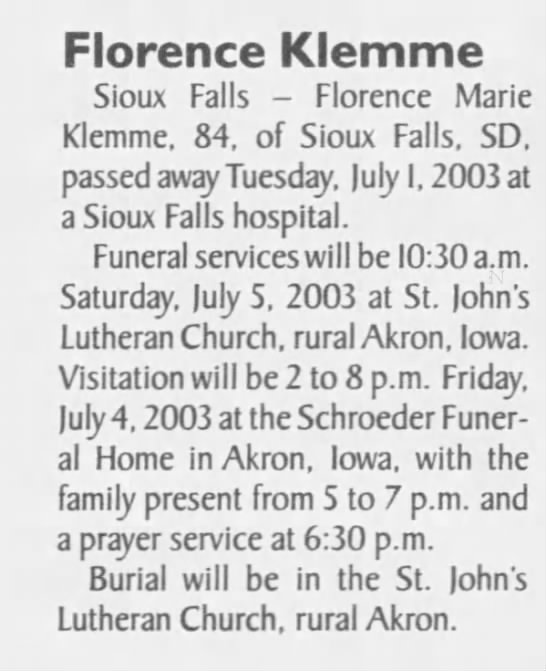 - [S271] Historical Newspaper Collection, Lemars Semi Weekly Sentinel (Le Mars, Iowa) 1951 February 13.
