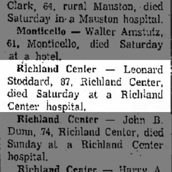 - [S225] Thompson's Richland Center Cemetery, online http://freepages.genealogy.rootsweb.com/~richlandwi/Richland/RichlandM.htm, O.P.2 96.