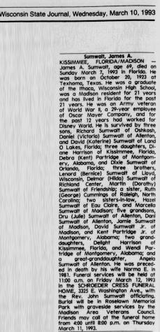 - James Allen Sumwalt+ b. 20 Oct 1923, d. 7 Mar 1993