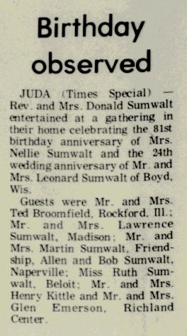 - Donald Elwin Sumwalt b. 28 Jun 1926, d. 25 Jul 1985