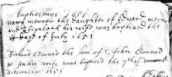- Edward Mercer b. 14 Apr 1653, d. 1654