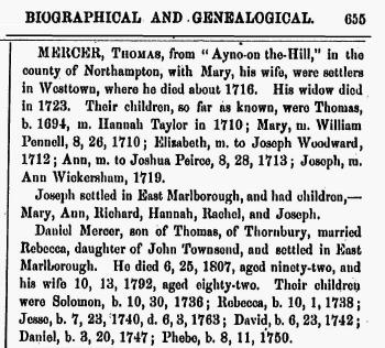 - Thomas Mercer+ b. Dec 1655, d. 13 Sep 1716