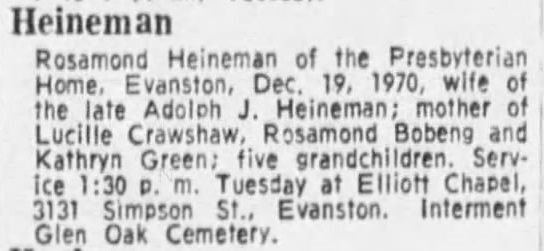 - Rosamond E. Heinemann+ b. 22 Apr 1901, d. 8 Apr 1987
