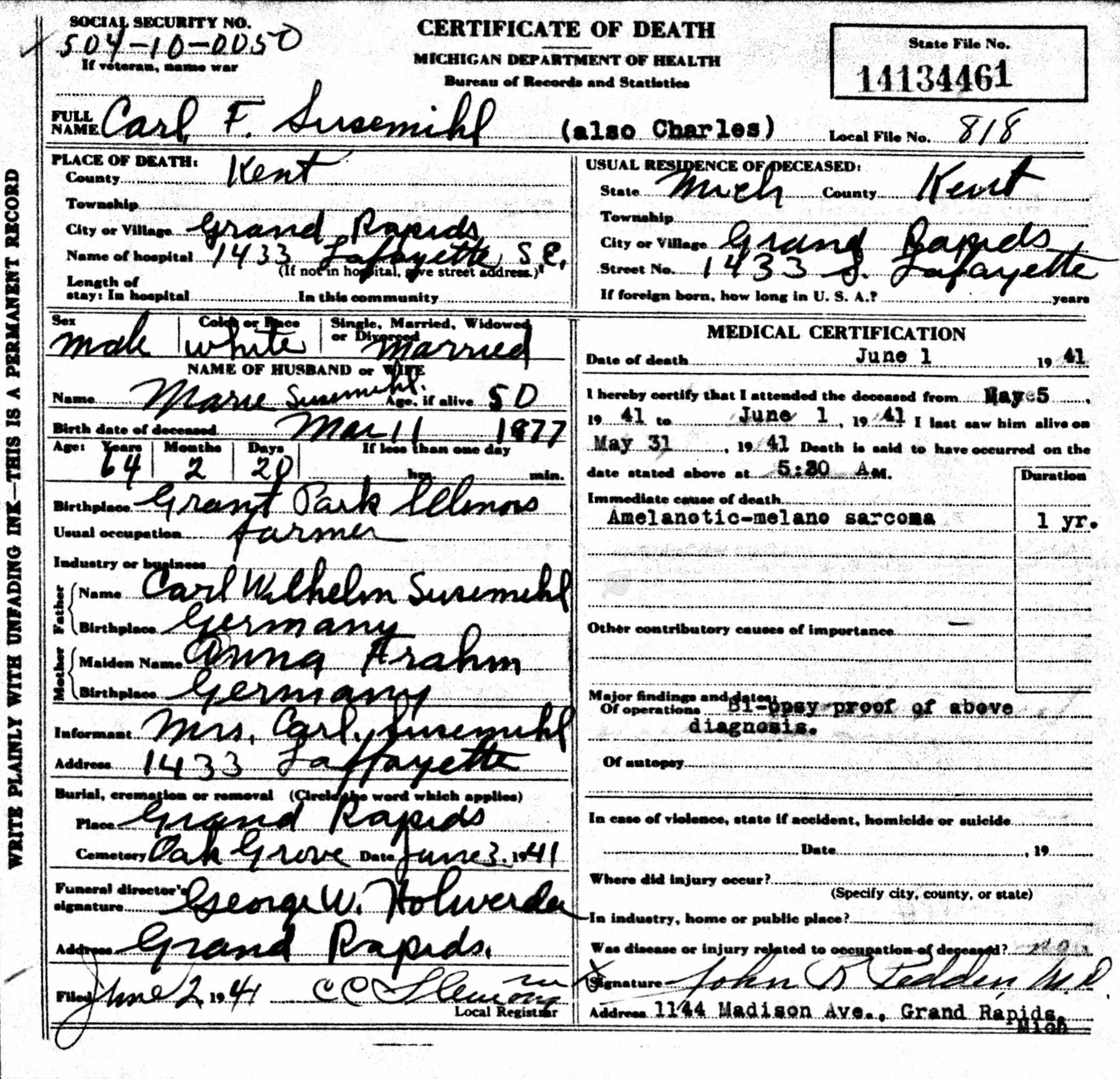 - Charles R. Susemiehl b. 5 Jun 1913, d. 1 Apr 1914
