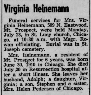 - Ruth Heinemann b. 25 Feb 1903, d. 27 Oct 1938