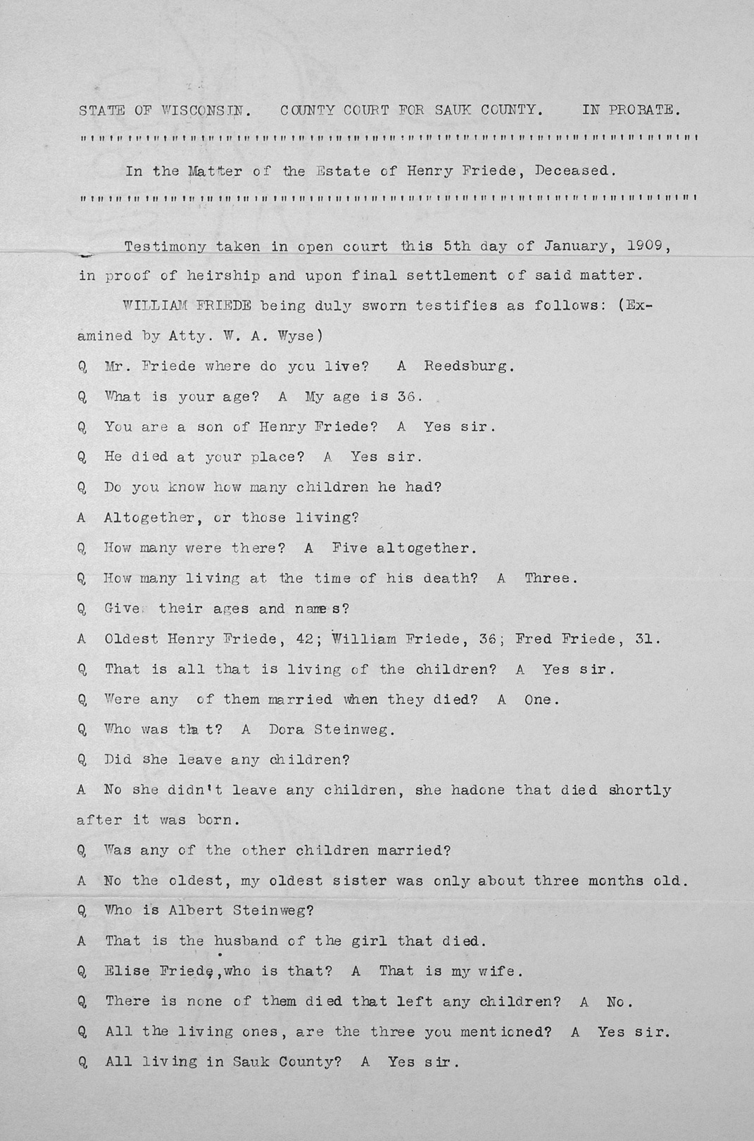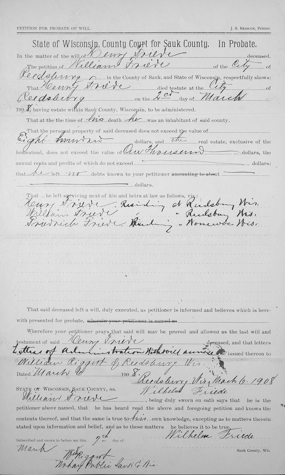 - [S6] Wisconsin, Wisconsin Vital Record to 1907, Name: Mary Friede