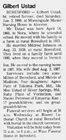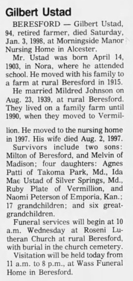 | Father* | Gilbert Ustad b. 14 Apr 1903, d. 3 Jan 1988 |