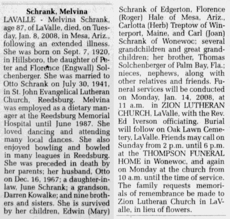- Melvina Solchenberger+ b. 7 Sep 1920, d. 8 Jan 2008