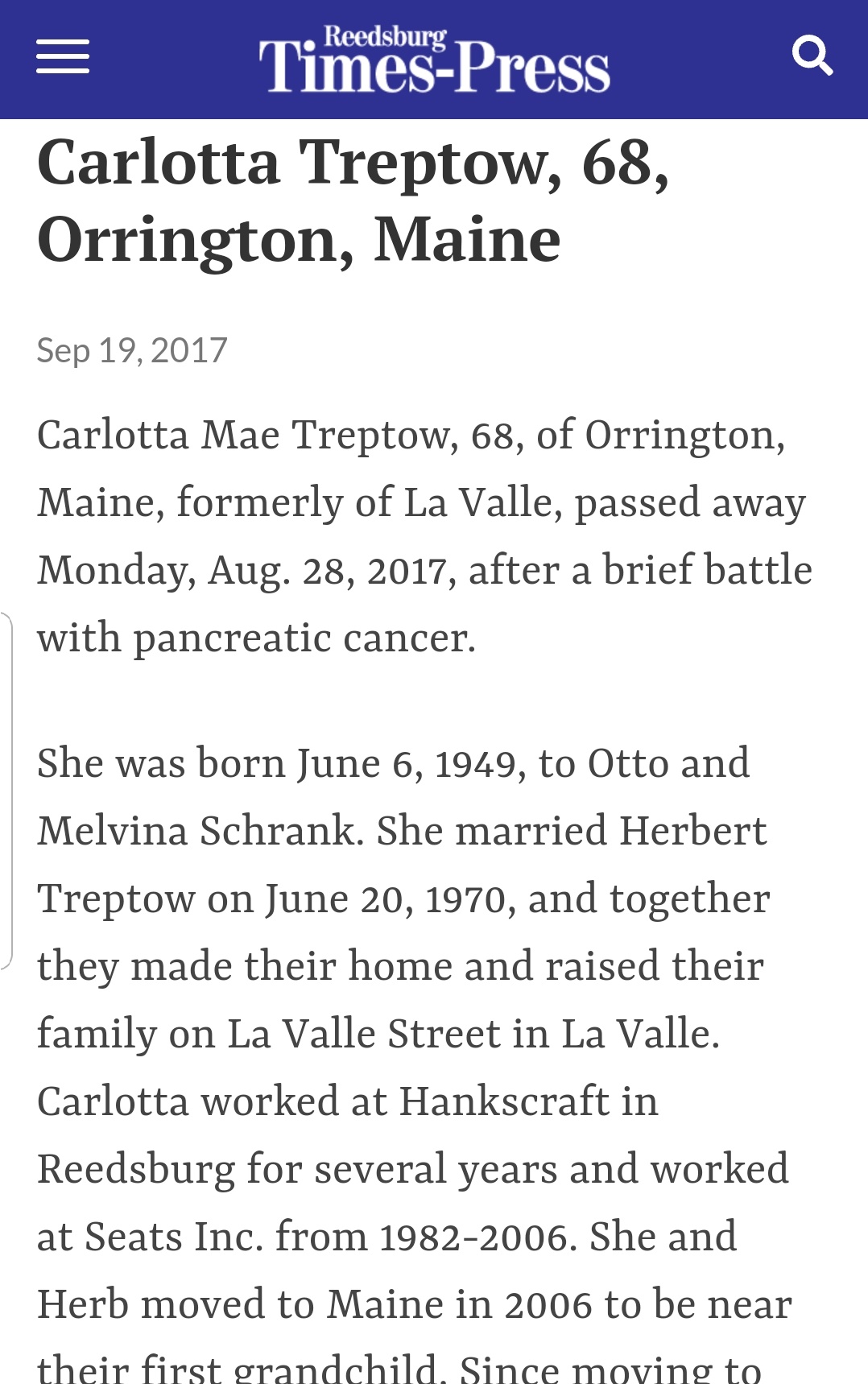 - Carlotta Mae Schrank+ b. 6 Jun 1949, d. 28 Aug 2017