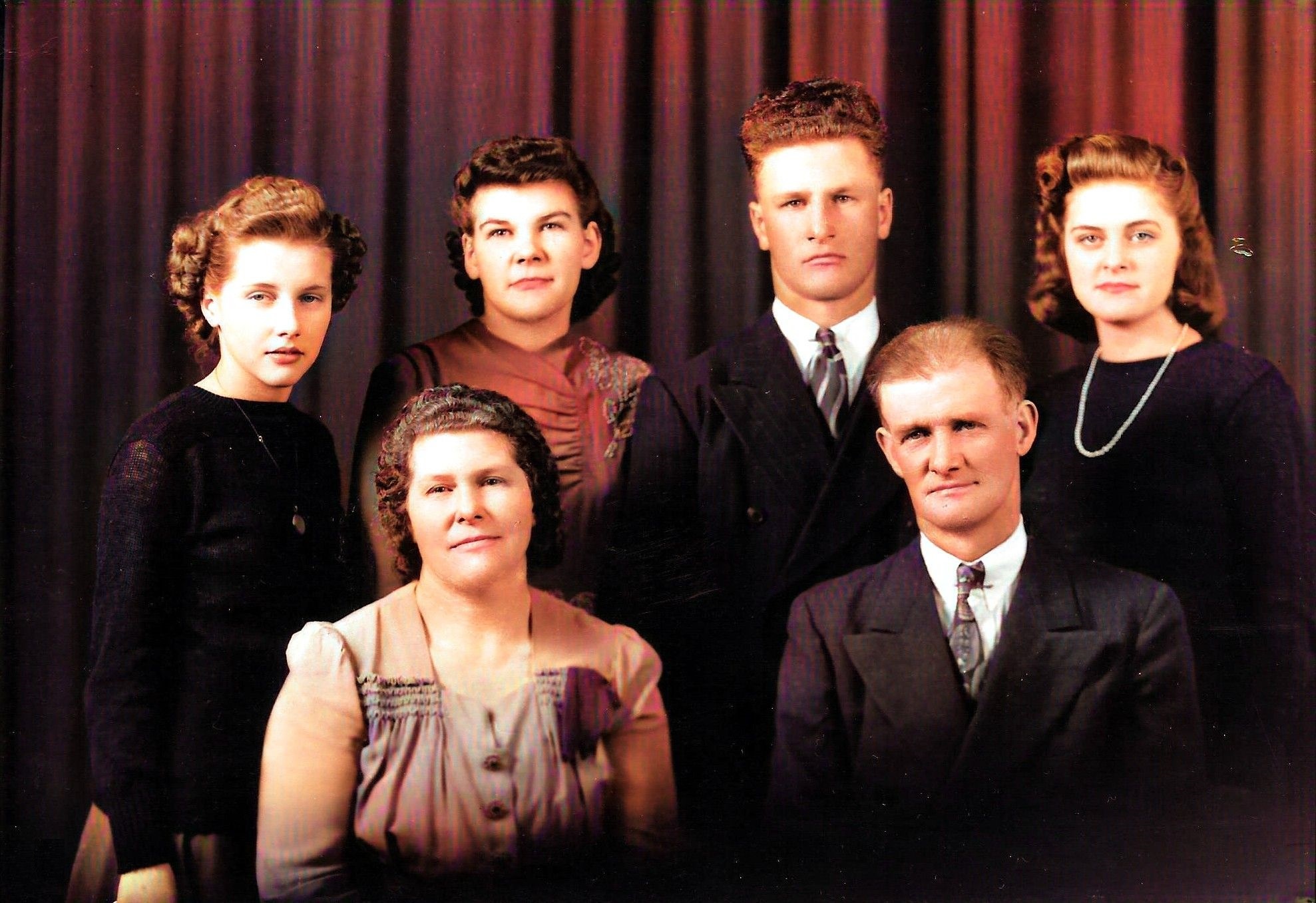 | Photo of Emil Klemme family (Agnes, LuIda, Leverne, Marge, Anna, Emil) from the 1940s. | ||