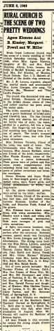 | 28 May 1949 | Brule Creek Lutheran Church, Spink, Union, South Dakota | She was a bridesmaid at the wedding of Berdell LeRoy Kinsley and Agnes Fern Klemme on 28 May 1949 at Brule Creek Lutheran Church, Spink, Union, South Dakota; Berdell Kinsley and Agnes Klemme wedding announcement; County of Residence: Union.5,1 |