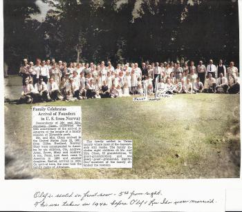 | 1942 | In 1942 picture of descendants of Abraham and Anna Gjytri Olson; cursive writing is from LuIda (Klemme) Abrahamson. | |