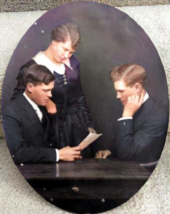 | Family Photo of Olaf & LuIda Abrahamson with their three sons Larry, James, and Curtis. | ||