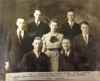 | 1949 | In 1949 Abrahamson extended family photo - Babe, Art and Martin Abraham, Jerry, Marie Olsen, LuIda, Rachel Olsen, Larry, Curt, Jim. | |