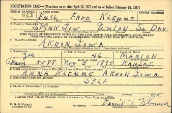 | Glen Owen Klemme was a Farmer in Union County, South Dakota. | ||