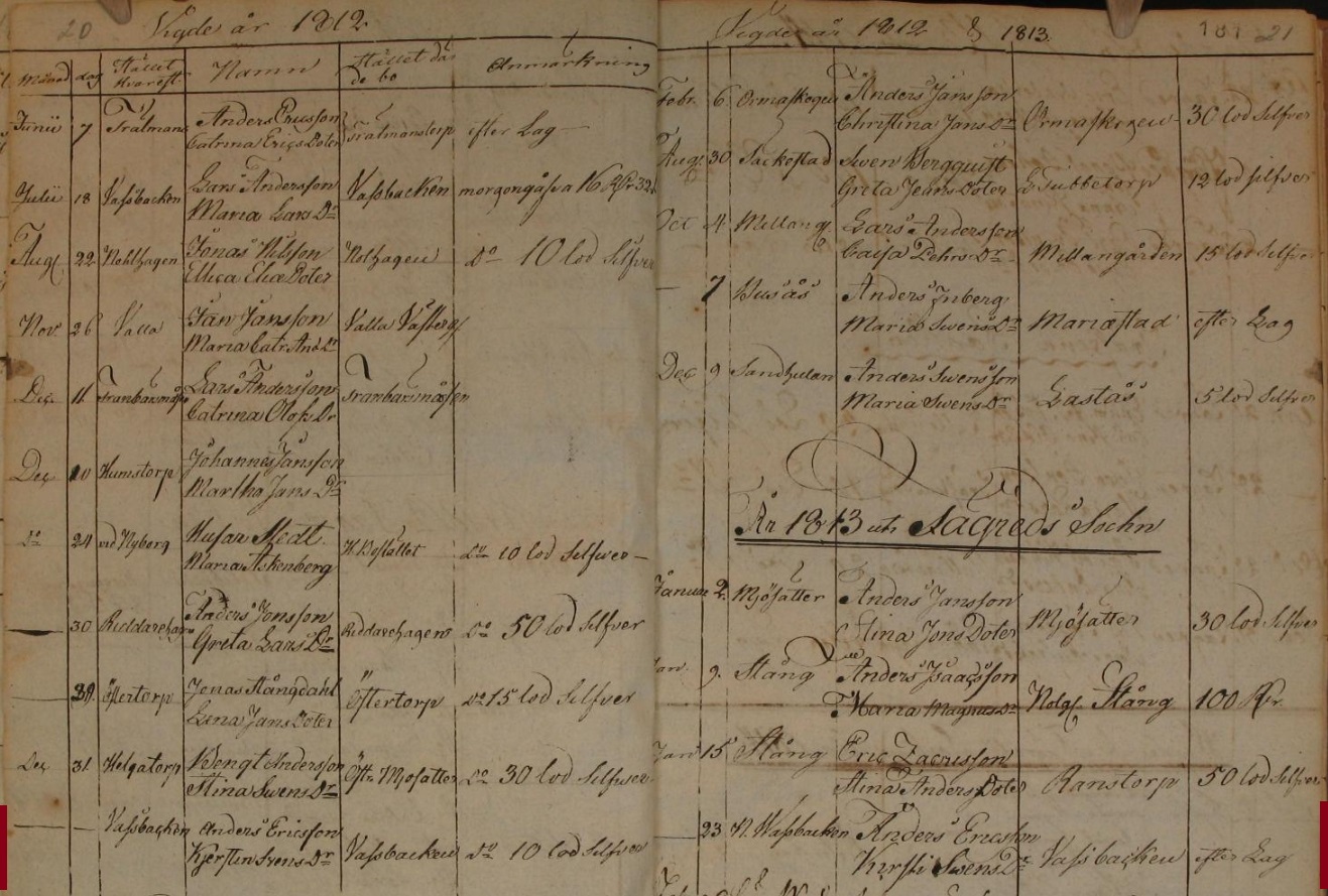 Marriage records included in scanned pages for births. - [S374] Ingemar Johansson's Genealogy Homepage, online http://www.ing-aur.se/index-en.html