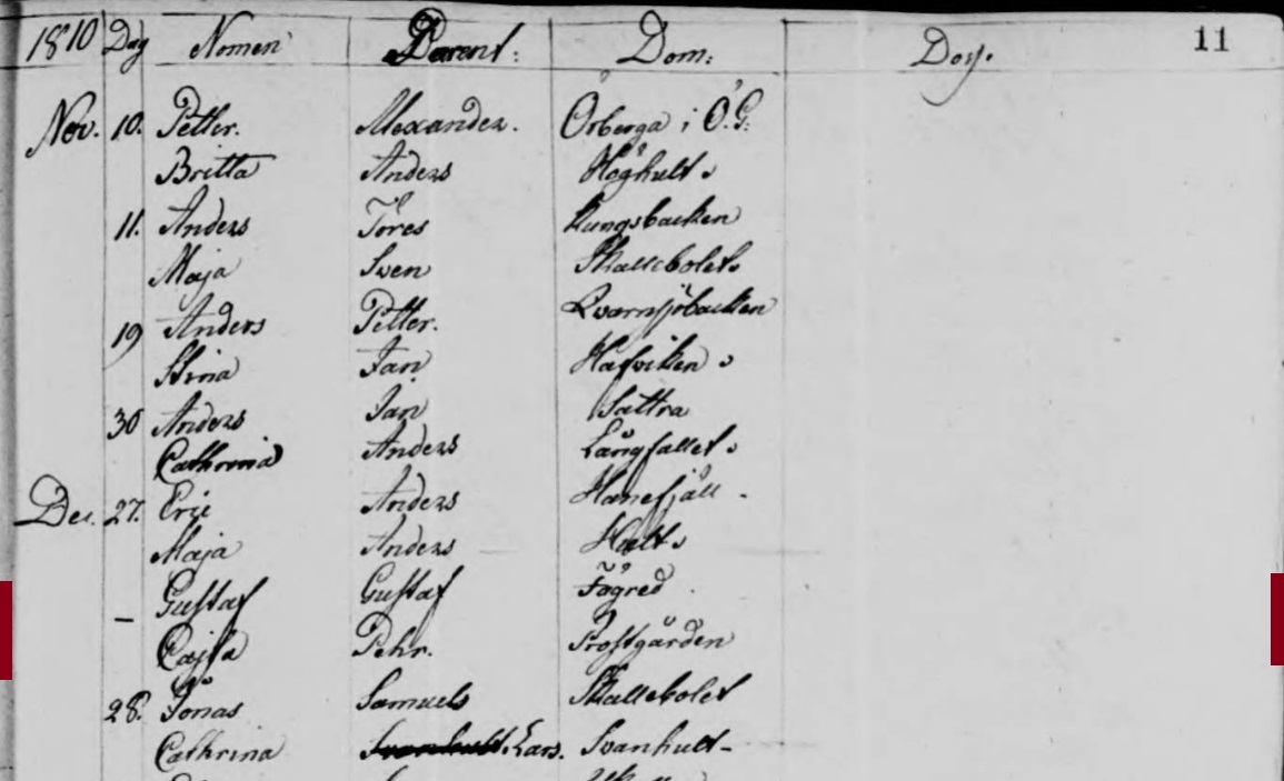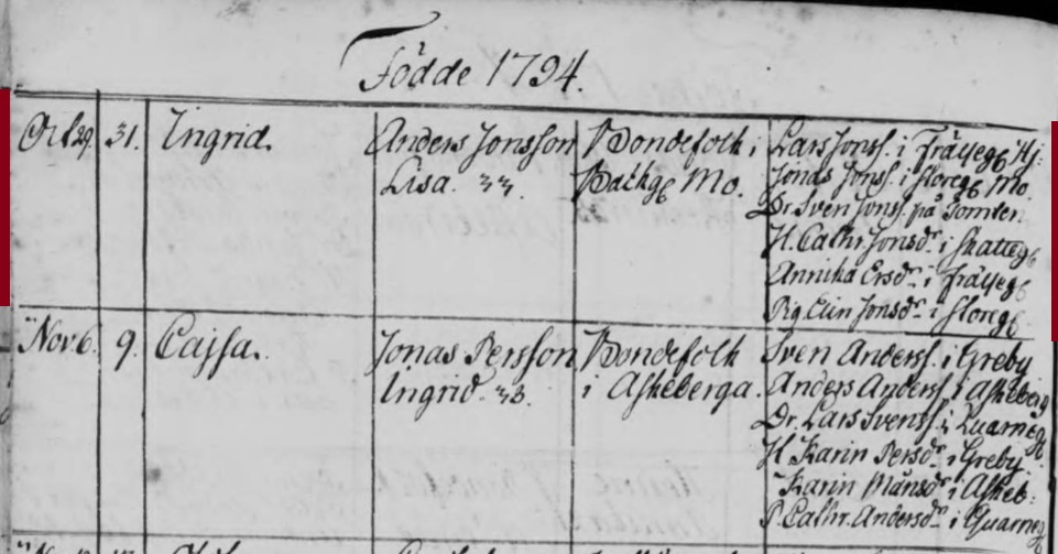 | Mother* | Christin Carlsdotter b. 1750, d. 20 Aug 1832 |