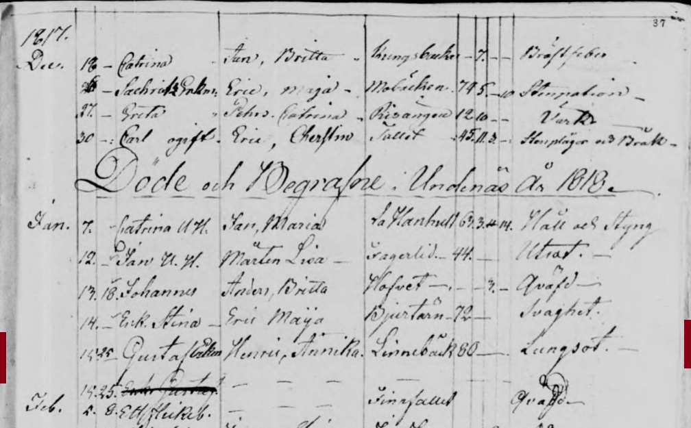 | Mother* | Ingrid Andersdotter b. 29 Oct 1794, d. 21 Jan 1869 |