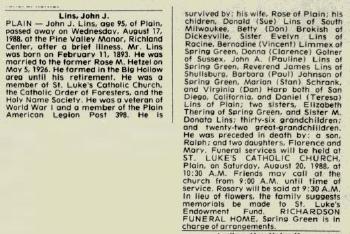 - Donald H. Lins b. 15 Mar 1927, d. 29 Jan 2009