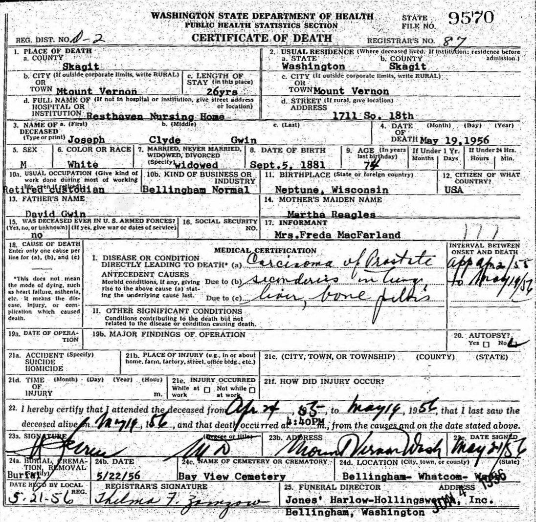 | Father* | Joseph Clyde Gwin b. 5 Sep 1881, d. 19 May 1956 |