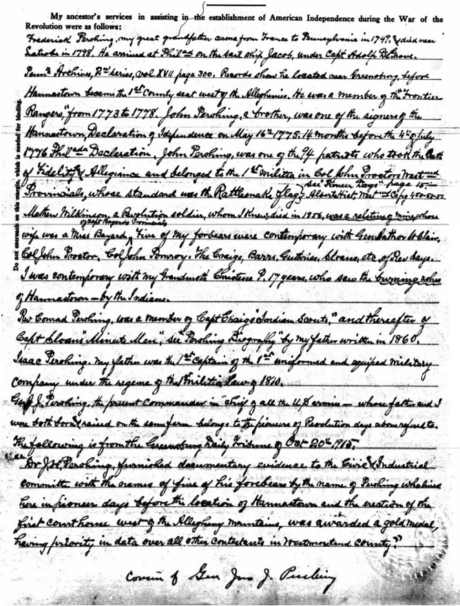 - John Fletcher Pershing+ b. 1 Mar 1834, d. 16 Mar 1906