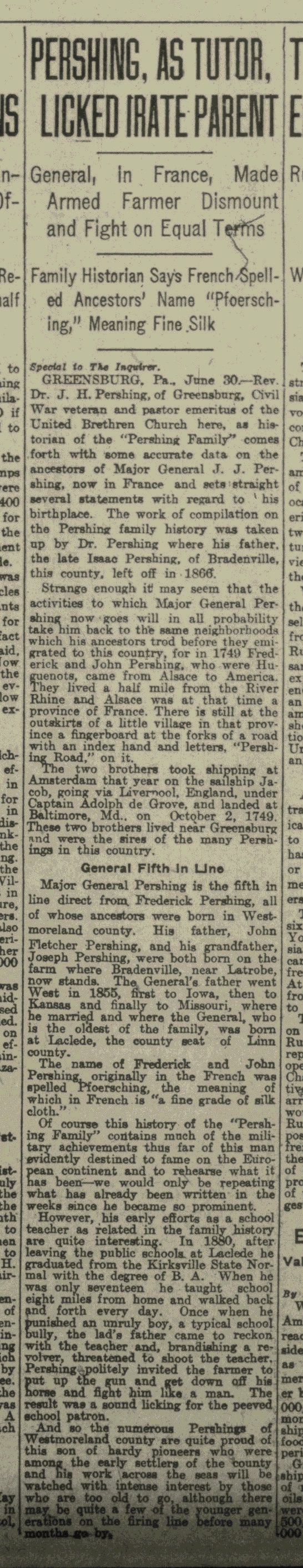 | Father* | Martin K. Pershing b. 16 Dec 1830, d. 2 Sep 1912 |