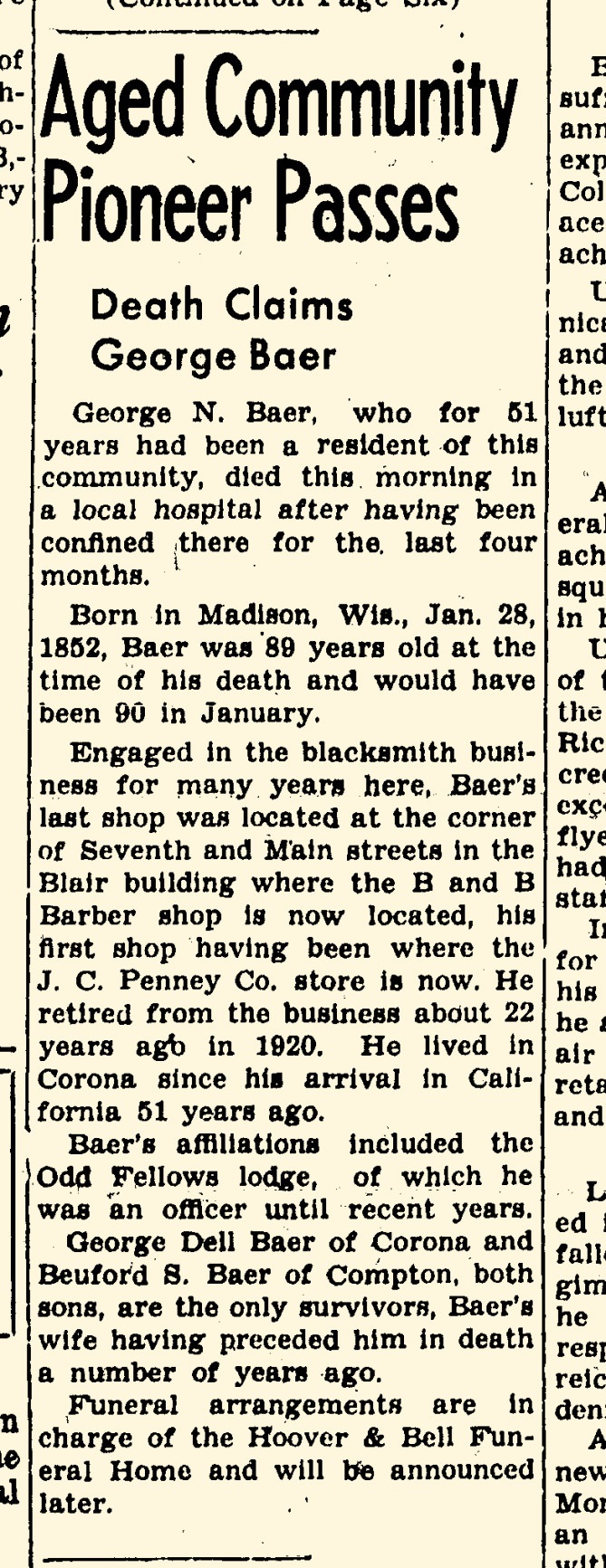 - George Delavan Baer b. 30 Jan 1883, d. 25 Mar 1962