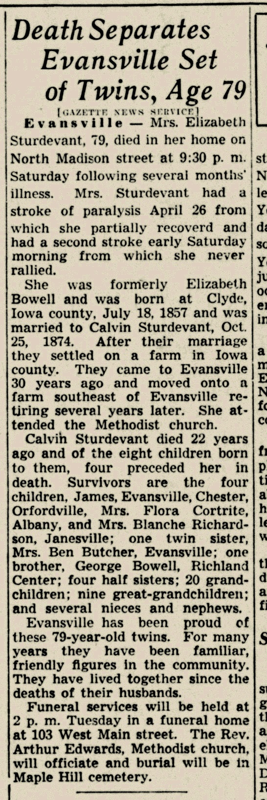 Children of Elizabeth Jane Bowell and Calvin Sturdevant