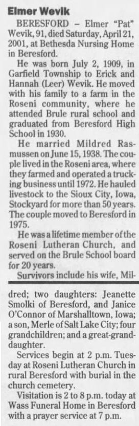 Child of Mildred Elvida Rasmussen and Elmer Benhard Wevik