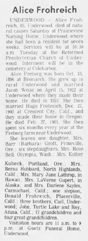 - Alice Amundson b. 20 Aug 1885, d. 16 Jul 1964
