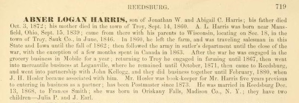 - [S247] U.S. Federal Census 1870 U.S. Federal Census, by Ancestry.com, Year: 1870; Census Place: Spring Green, Sauk, Wisconsin; Roll: M593_1739; Page: 234B; Image: 157048; Family History Library Film: 553238.