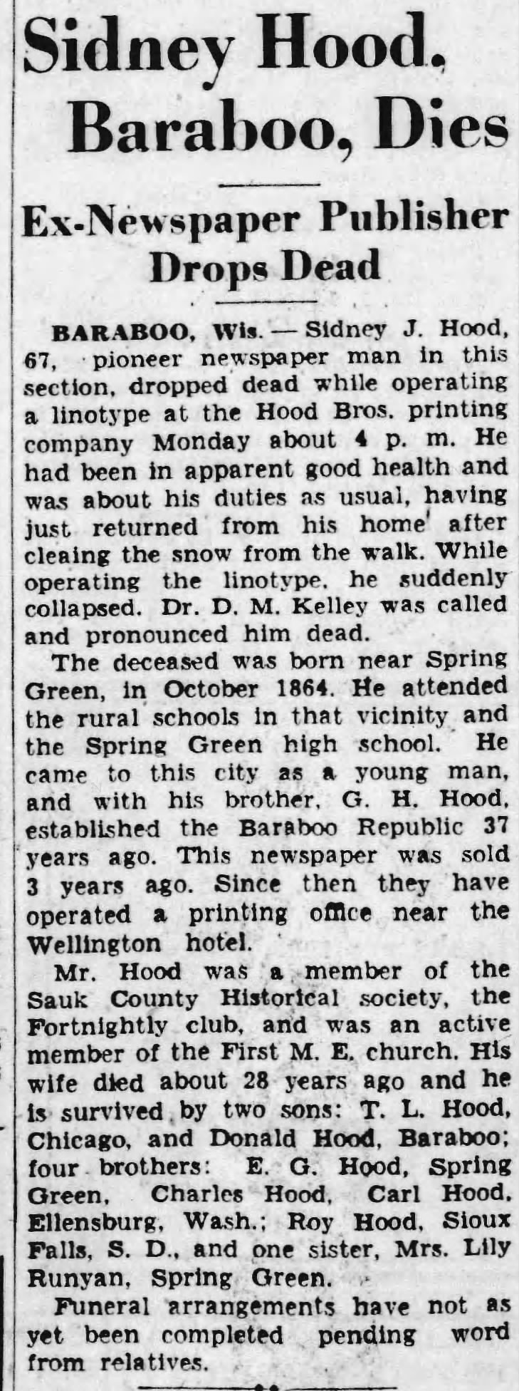 - Sidney J. Hood+ b. 10 Oct 1864, d. 1 Feb 1932