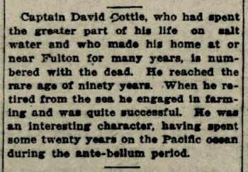 | Father* | Captain David Cottle b. 21 Aug 1819, d. Dec 1909 |
