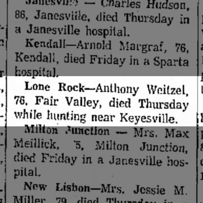 - Harold J. Weitzel+ b. 15 Feb 1915, d. 11 Mar 1972