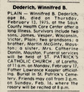 | Father* | Dennis Anthony Dederich b. 13 Jun 1859, d. 13 Jul 1920 |