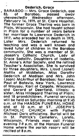 - Cecelia A. Dederich b. 1905, d. 1987